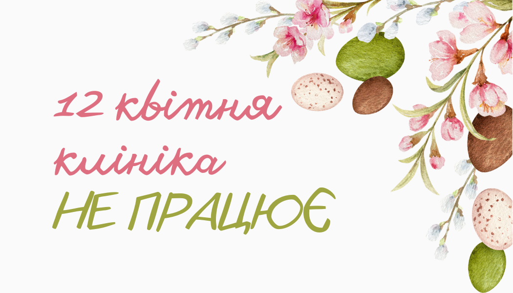 Кві 10 2026 0 З Великоднем! Новини Шановні пацієнти, звертаємо вашу увагу на те, що 12 квітня (неділя) клініка на Лютеранській НЕ ПРАЦЮЄ!!! Вітаємо вас з прийдешнім світлим святом, бажаємо миру та злагоди в вашій оселі. Бережіть себе! Залишити коментар Скасувати відповідь Зберегти моє ім'я, e-mail, та адресу сайту в цьому браузері для моїх подальших коментарів. Δ